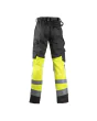 Frontlommer, ID-kortlomme, pennlommer, baklomme, elastisk midje, knebeskyttelseslommer, verktøyløkke, ekstra lengde, flammehemmende reflekser, 62% bomull, 33% polyester, 4% elastan, 1% antistatisk fiber, 280 g/m², EN 1149-5, EN ISO 11611 A1, EN ISO 11612 A1+A2, B1, C1, E1, F1, EN ISO 20471, IEC 61482-2:2018