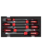 Slotted og Philips skrutrekkere, vanadium plus stål, matt krombelagt, 3-komponents håndtak, oljebestandig, lett å rengjøre, 6 deler, 1/3 Check-Tool-Module, total bredde 158 mm, total høyde 35 mm, total lengde 310 mm, vekt 0,75 kg