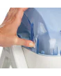 For å rengjøre dispenseren, bruk en fuktig klut med mild såpe. Unngå sterke kjemikalier som kan skade plastmaterialet.