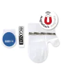 - Fest plastikkholderen til disken med de medfølgende limprikkene, eller heng den på kroppen (belte, forkle osv.).
