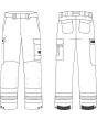 Flammehemmende, høy slitestyrke, komfortabel passform, EN ISO 11612, EN ISO 11611, EN 61482-1-2, 50% modakryl, 36% bomull, 12% polyamid, 2% antistat, stikklommer, baklommer med klaff, lårlomme med klaff, mobillomme, skjult D-ring, tommestokklomme, kneputelommer, justerbar fotvidde, Baricader EP forsterkning.