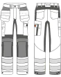 - Praktiske lommer: Stikklommer, hengelommer, lårlomme med klaff, og tommestokklomme med verktøyfester for enkel tilgang til verktøy.