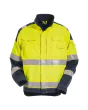 Inherent flammehemmende, lett materiale, høy slitestyrke, EN ISO 11612, EN 61482-1-2, EN IEC 61482-1-1, EN ISO 20471, CE-merket, kontrastsømmer, 3-nåls sømmer, to hemper for kommunikasjonsutstyr, stikklommer, stor lomme med glidelås, forlenget rygg, regulering i midjen, skjult knappejustering