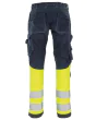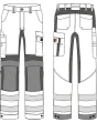 Metallfri, inherent flammehemmende, stretchpaneler, EN ISO 11612, EN ISO 11611, EN 61482-1-2, EN IEC 61482-1-1, 45% modakryl, 35% bomull, 18% polyamid, 2% antistat, forsterket gylf, stikklommer, lårlomme, tommestokklomme, justerbare kneputelommer, baklommer, trykknapper for justering.