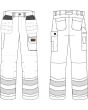 - Praktiske lommer: Hengelommer med verktøyholdere, stikklommer, baklommer med klaffer, lårlomme med klaff og førstehjelpslomme