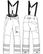 100% polyester, meshfôr, avtakbare seler, teipede sømmer, EN 343 4:4, PFAS-fri, CE-merket, forhøyet ryggparti, stikklommer, toveis glidelås, kneputelommer, snølås, pusteegenskaper