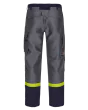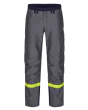 PFAS-fri, høy slitestyrke, EN ISO 11612, EN ISO 11611, EN 61482-1-2, 74% viskose, 15% aramid, 10% polyamid, 1% antistat, stikklommer, lårlomme med klaff, justerbare kneputelommer, baklommer med klaff, tommestokklomme, forsterkningsmateriale