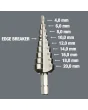 9 bortrinn, økning med 2 mm, for materialer opp til 4,5 mm, med kantbrekker, ¼" sekskant, egnet for DIN ISO 1173-D 6.3