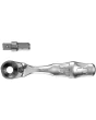 Drop-forged, full-stål design, 60 tenner, 6° returvinkel, ergonomisk design, ¼" bit og sokkel, ideell for trange rom, over 65 Nm moment